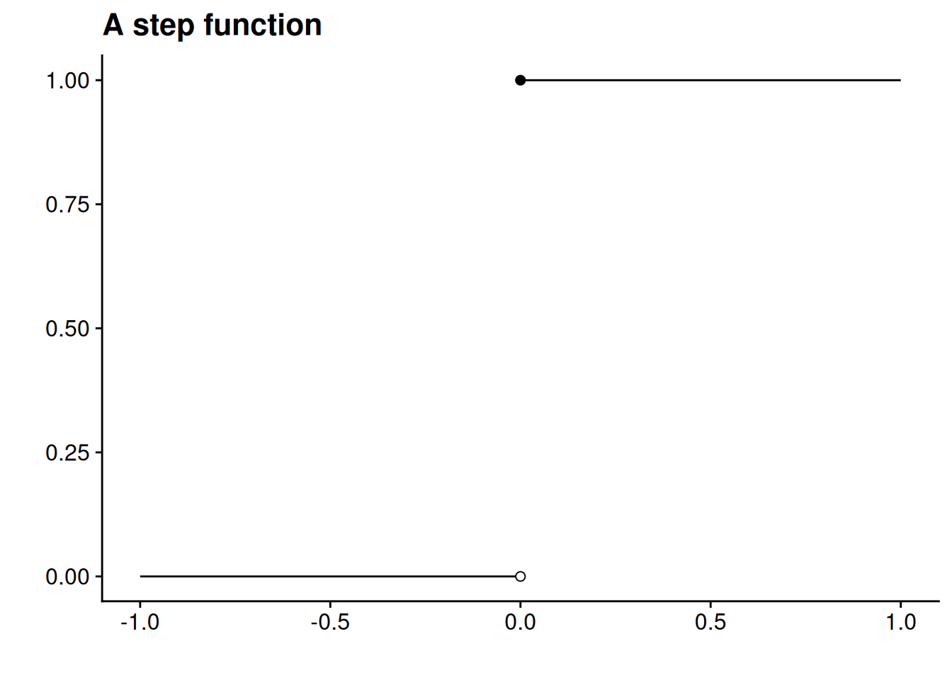 To practice this definition, you should work through proving that at \(x = 0\), the left-hand limit of the step function is 0 and the right-hand limit is 1.